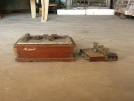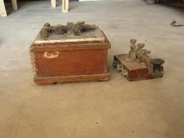 | Description / विवरण | It s a old telegram machine, made of wood and iron. A handle is shown on it which is used for typing the files. |