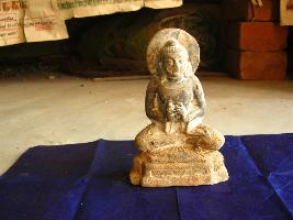 | Description / विवरण | A beautiful Budha image sitting in a dharma chakra mudra. Sitting on a nectangular sized pidha mandapa. Back is circular. |