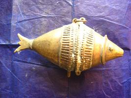 | Description / विवरण | A fish like object made of brass joined by a knot. Its tail and face are clearly visible . Divided into two parts. |