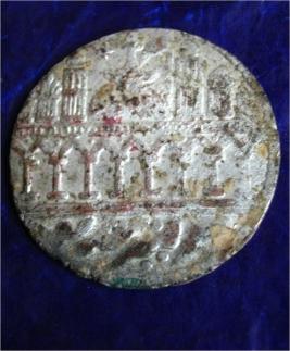 | Description / विवरण | On the reverse side a replica of Tajmahal is noticed. Below persian script is noticed. On the obverse also persian script is written around and at the middle. |