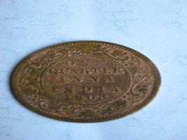 | Description / विवरण | The obverse side has the head of Edward VII below which King and emperor are found. On the reverse one quarter anna, India, 1908 is written inside circular floral design. |