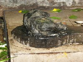 | Description / विवरण | it is a bull image in a couchant pose. It is placed on the on the sakti of the temple. It is worshipped by the temple priest. |