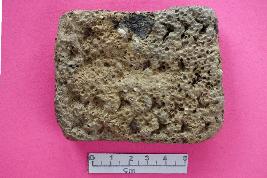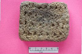 | Description / विवरण | Rectangular skin flesh rubber, decorated with arrow shaped and triangular cut marks on both the faces, made on clay mixed with sand, husk, vegetable, ill-fired heavily weathered. |
