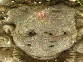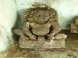 | Description / विवरण | It is a fine mandira charini image kept in front of the temple outward facing. It is in a sitting pose. Its belly is big. Hairstyle is in a jata style. It has ear ornaments. Most probably a Gana figure. Not a female figure. |