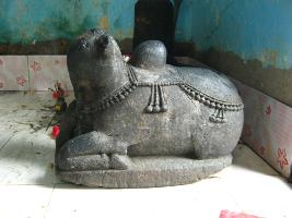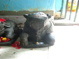 | Description / विवरण | It s a bull sculpture infront of the garva griha. Its is in a kneeling pose raising its fornt right leg. |