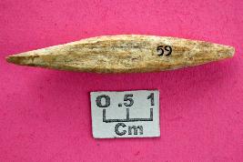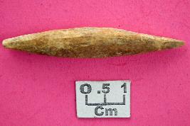 | Description / विवरण | A long bone point worked on both sides, slightly rough chipping on one of the surfaces. |