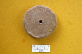 | Description / विवरण | Circular, parallel thickness shaped by pressing on periphery, perforation in the center. |