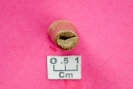 | Description / विवरण | Handmade, well-baked with light brown slip making a shinning surface of typical Mauryan polish, having circular base, tapering upwards, truncated, grooved top with a breaking line, circular section. |