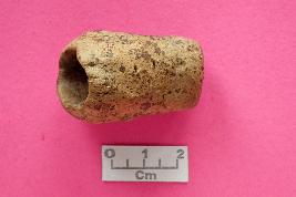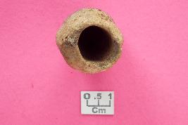 | Description / विवरण | An indeterminate handmade object, elongated in shape, hole on the top, rounded section, ill-fired. |