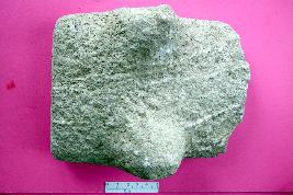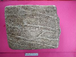 | Description / विवरण | Made of granite with quartz veins, rectangular in shape, concave at the centre due to constant use. |