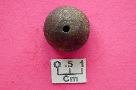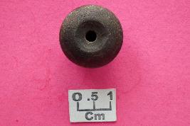 | Description / विवरण | Areca-nut bead with concave base and truncated top, hole in the centre, concentric lines all around the body, ill-fired. |