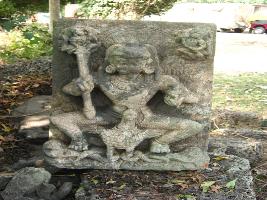 | Description / विवरण | A two armed Kartikeya image holding a dandakain his right hand ana a small cock in his left hand. The peacock is sitting on a big snake. |