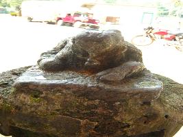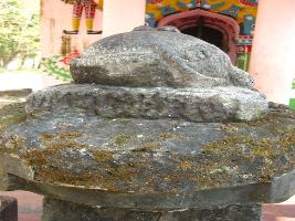 | Description / विवरण | A bull sculpture installed upon a pillar in a kneeling pose will a bell hanging in his neck. |