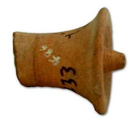 | Description / विवरण | Broken piece of highly polished red ware sprinkler with long neck topped by a circular part and a central projected knob having minute perforation. |