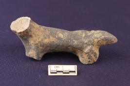 | Description / विवरण | Fragment of an animal figurine, probably a dog. Its head and four legs are broken. The tail, which is also partly broken, is prominent. |