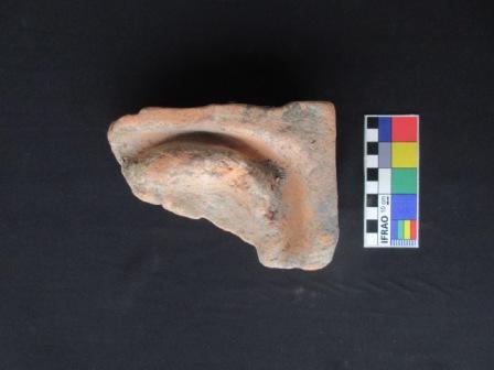 Terracotta Plaque, depicting indeterminate pattern, semi-circular depression is visible.