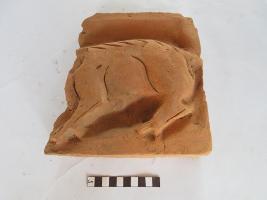 Animal figures, 2 legs with hoofs are clearly visible. The head part is missing. The body is marked with incised line on the back portion of the body.