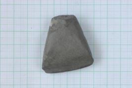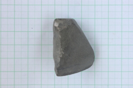 A small dark grayish dolerite axe of trapezoidal shape having eliptical long section and rounded butt end with roughly straight cutting edge.