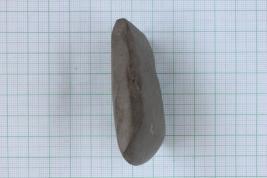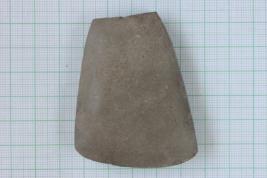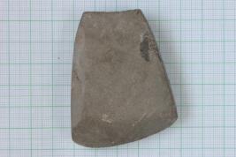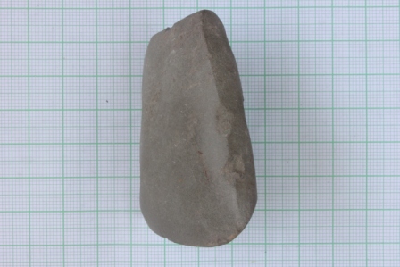 The light grayish dolerite adze has a rectangular long section and oblique convex cutting edge. It has a truncated and rectangular butt end.