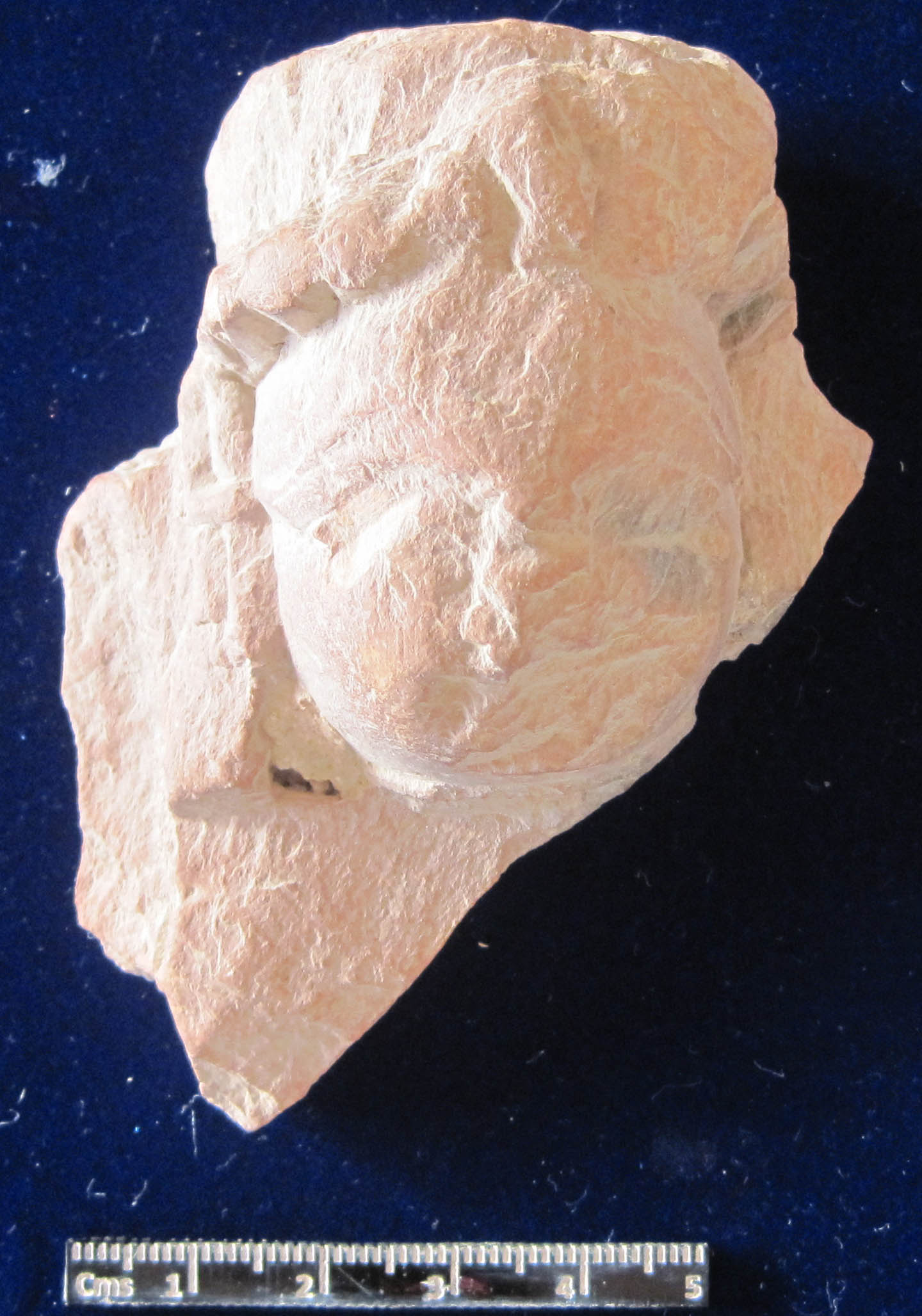 Human sculpture made out of red sand stone decorated with a mala type Hair Band