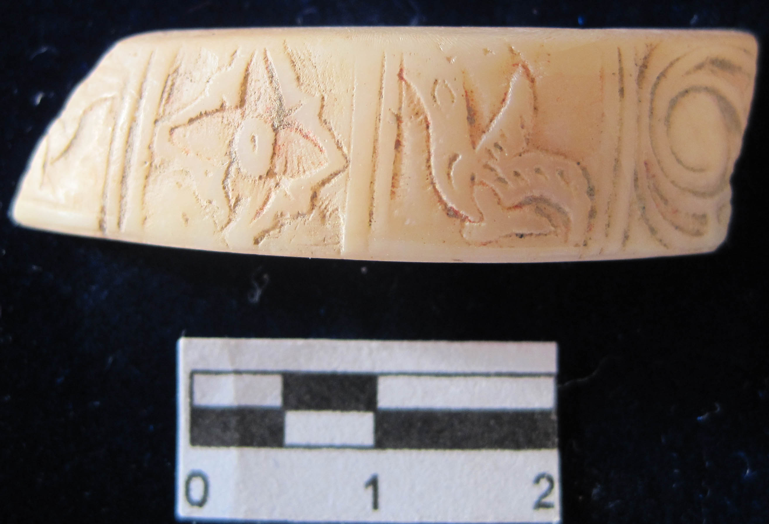 Surface is decorated with geometrical patterns and birds design in blocks