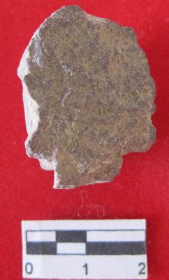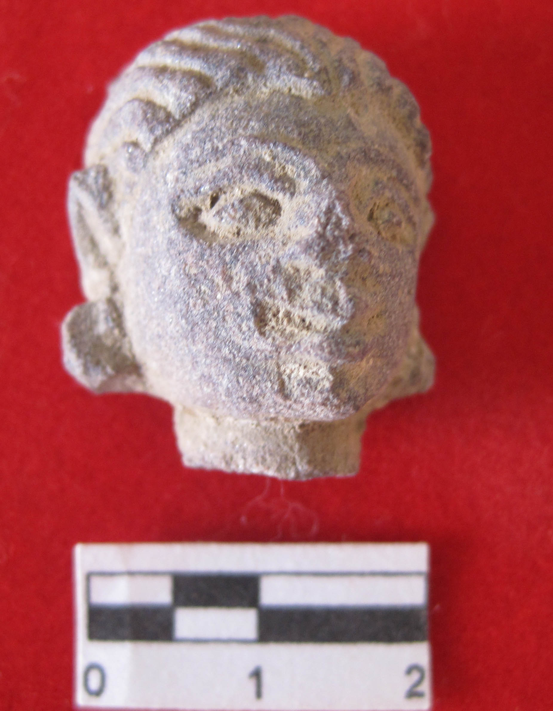 Small size stone head hair is combed back side wearing kundala, nose mouth and chine is prominent