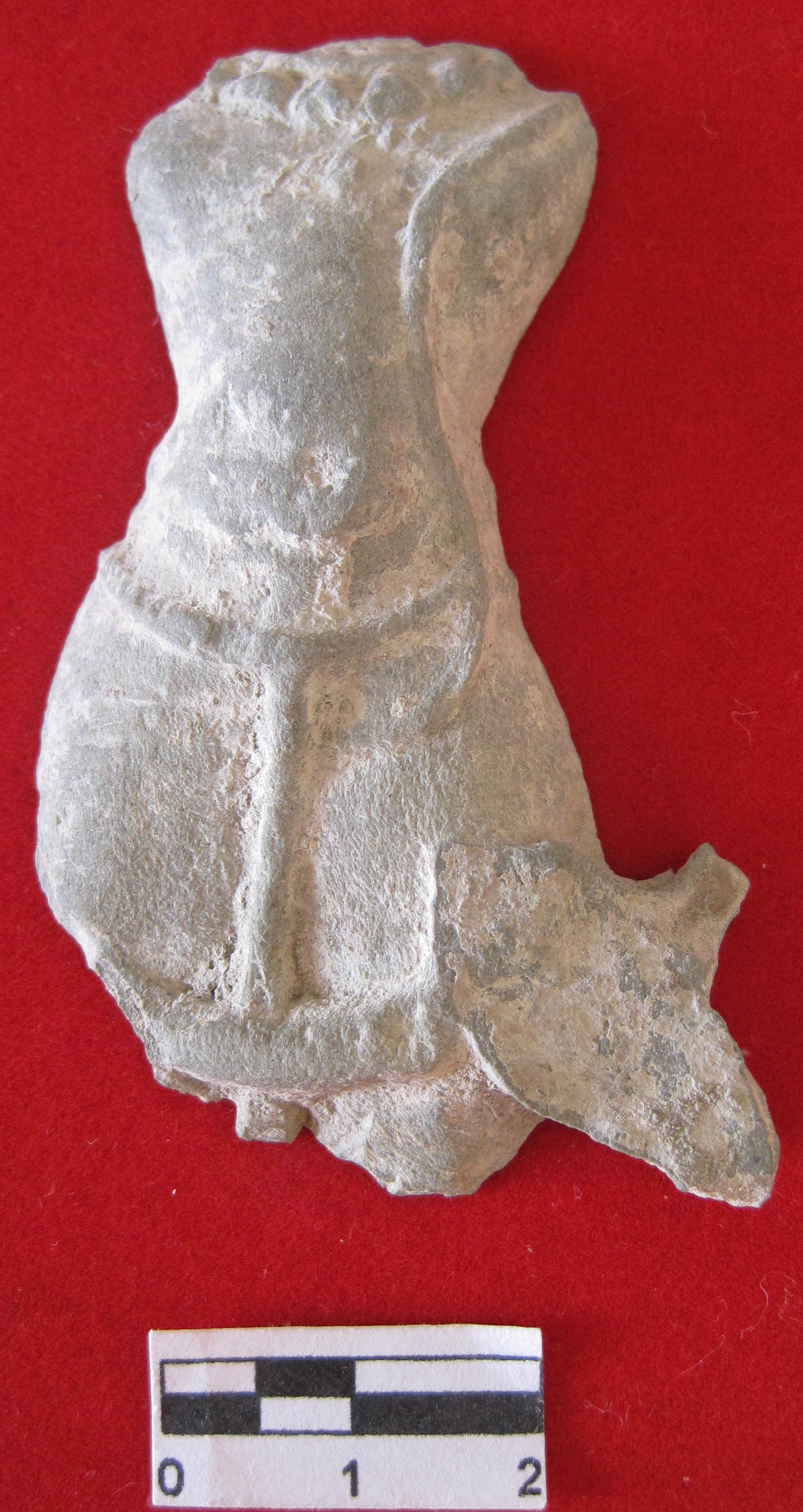 Face, both hand and lower part of leg is broken, remaining portion is decorated with necklace ygnopoveet banmala, shrivashta shown on chest.