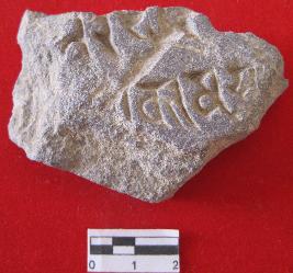 Broken two line inscriptions with Devnagri corrector one word Ka is readable.