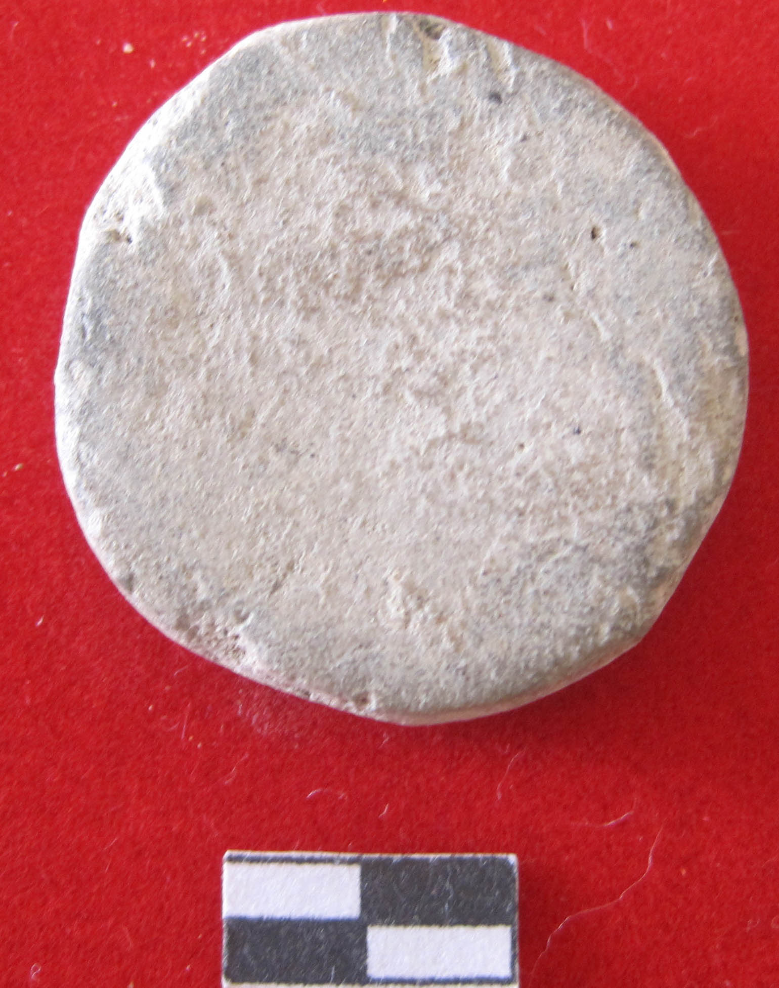 Medium size hope scotch made out of mica contentspot sherd.