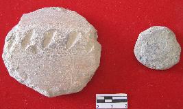 1. Semi circular with design. 2. Medium size grey colour.