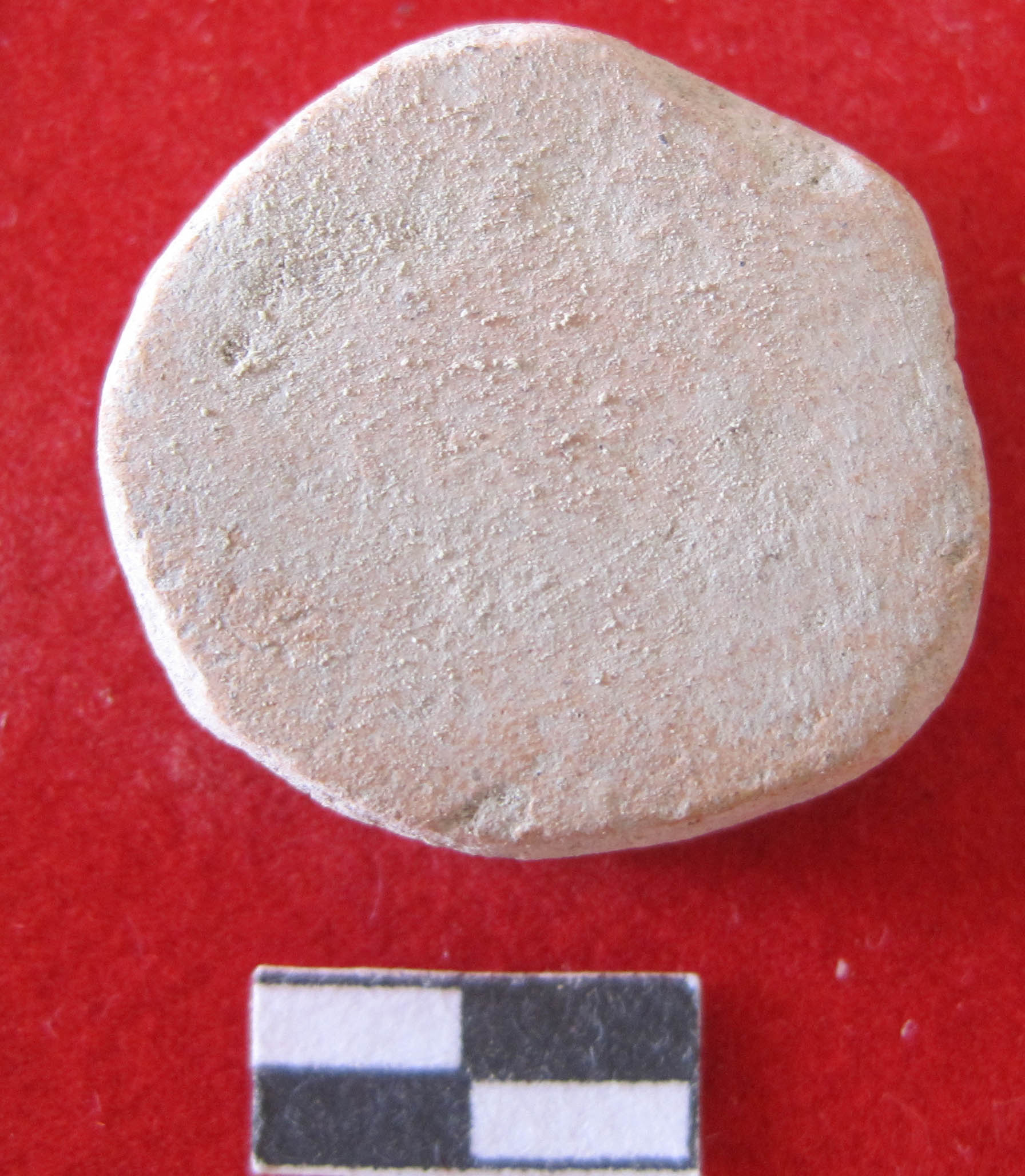 Made out of red ware pot sherd.