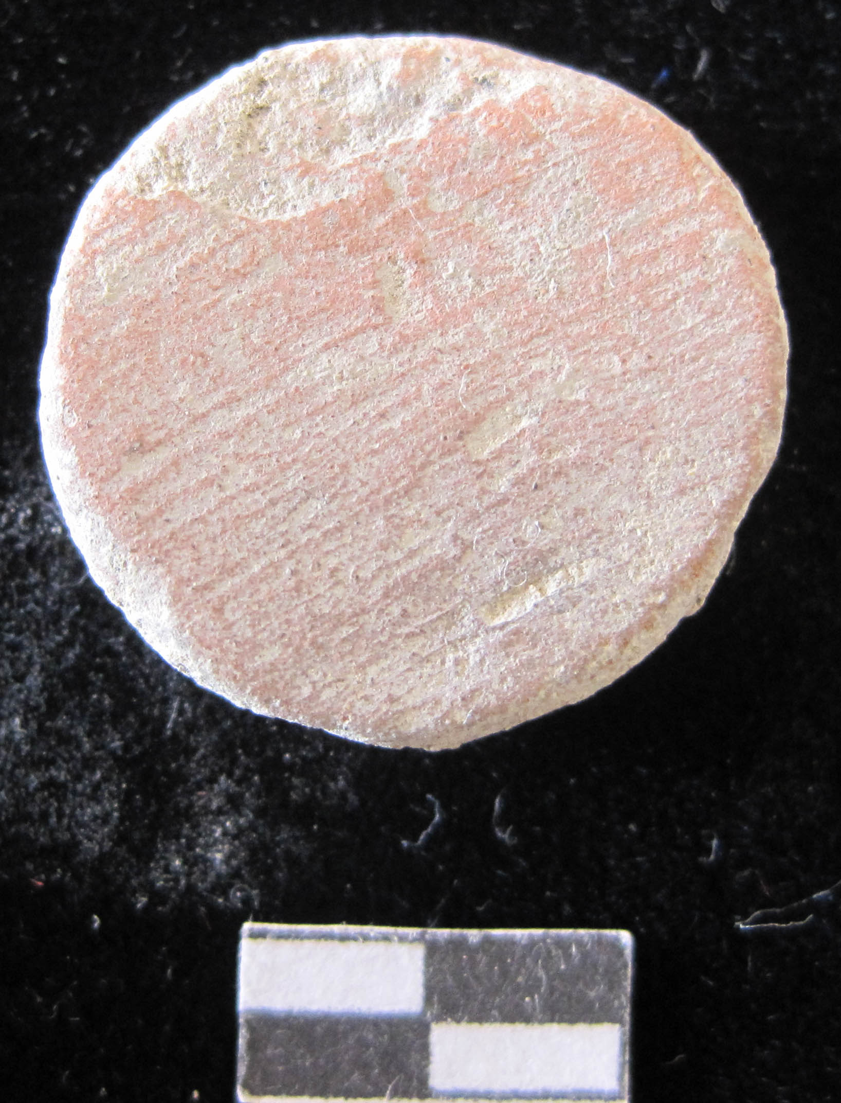 Small size made out of red ware pot sherd.