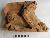 Lion body, head is missing the figure facing left direction, shown in squatting position. Mane is shown over the shoulder; chest is marked with concentric circles. Tail is shown raised up. Front right leg has two incision mark.