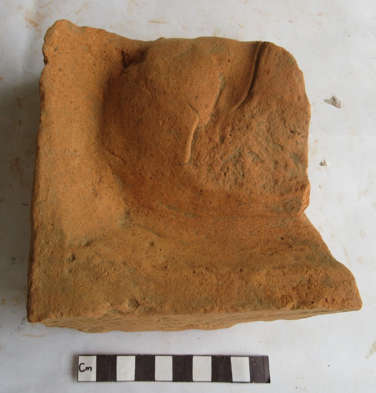 Fragment, hind part of animal body. Missing all the other body parts. Semi-Circular depression around the projected part.