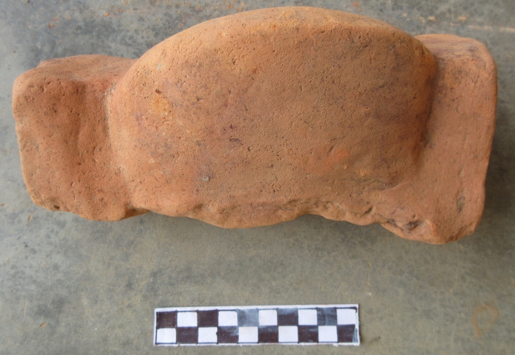 Cow leg impression, half is broken. The upper top part is half round and tapering down to the bottom.