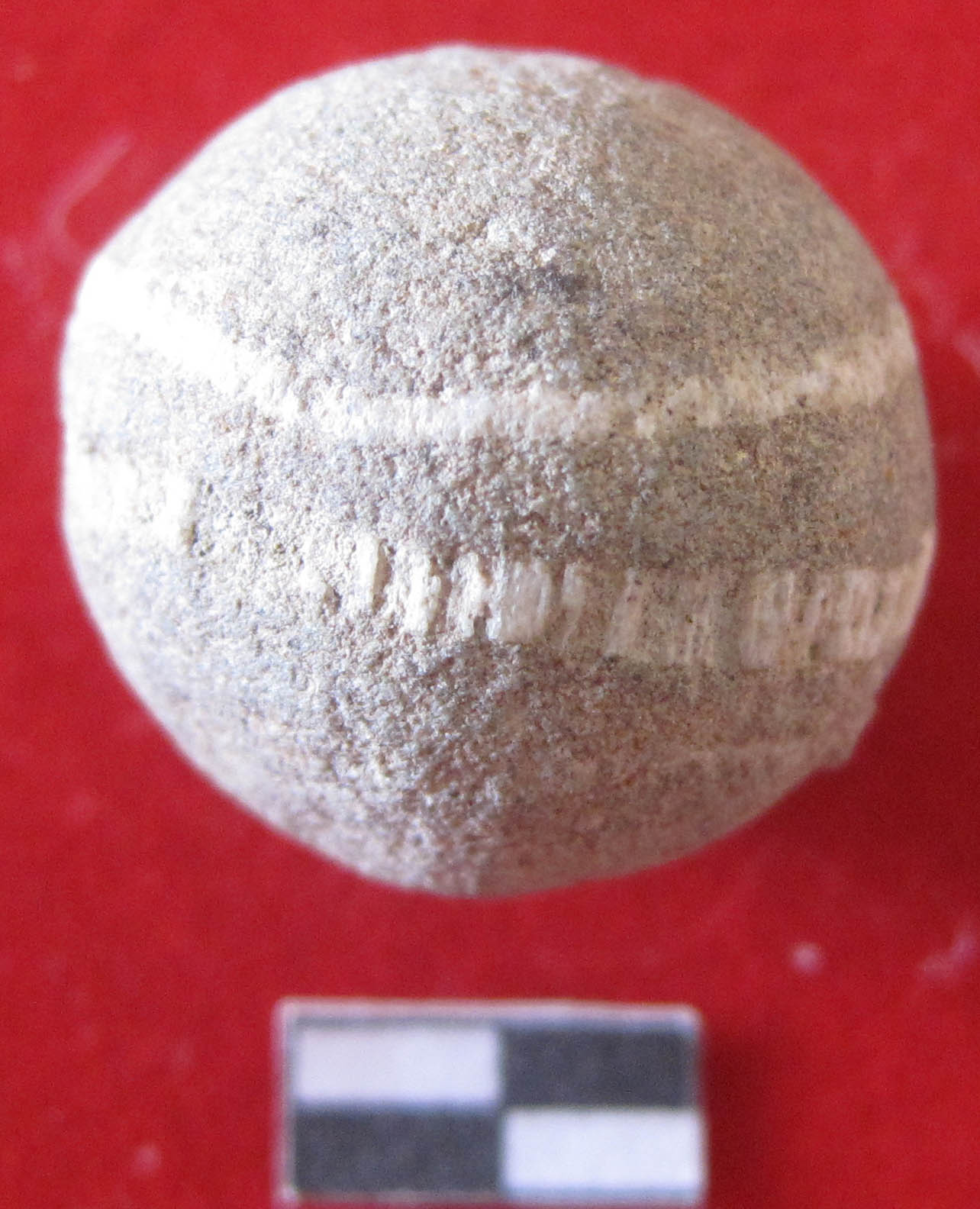 Circular in shape having two white parallel line around body