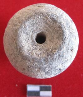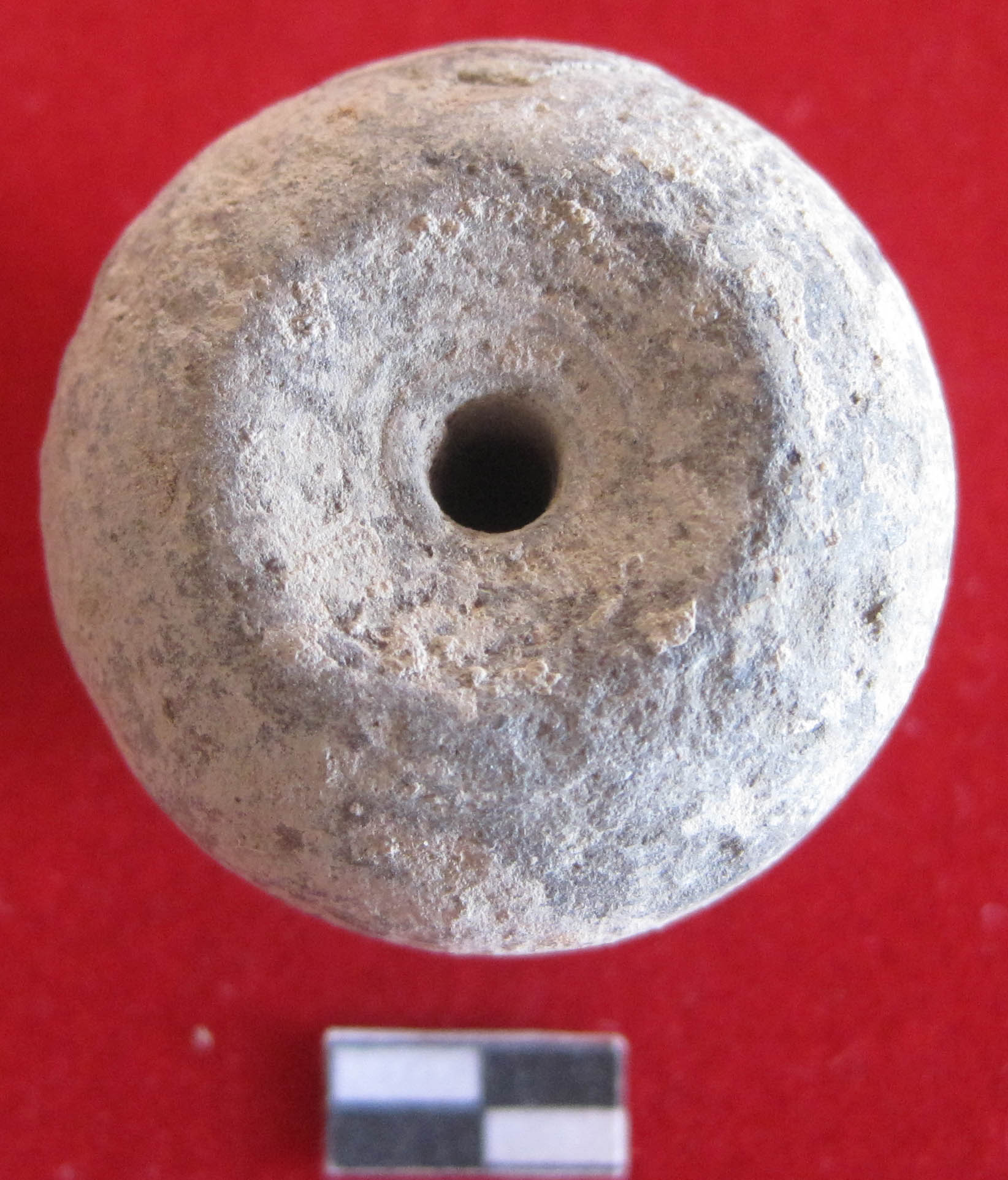 Circular arcanute shape.Perforation in center part of object. Use as ornament purpose. Red in color. Smooth surface.