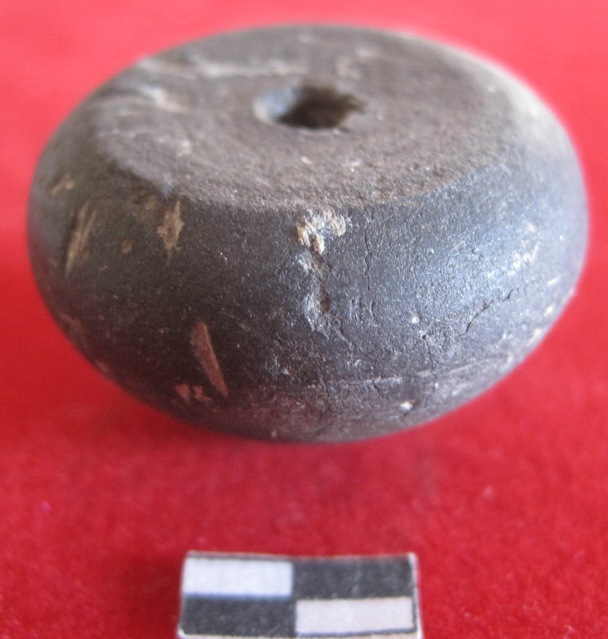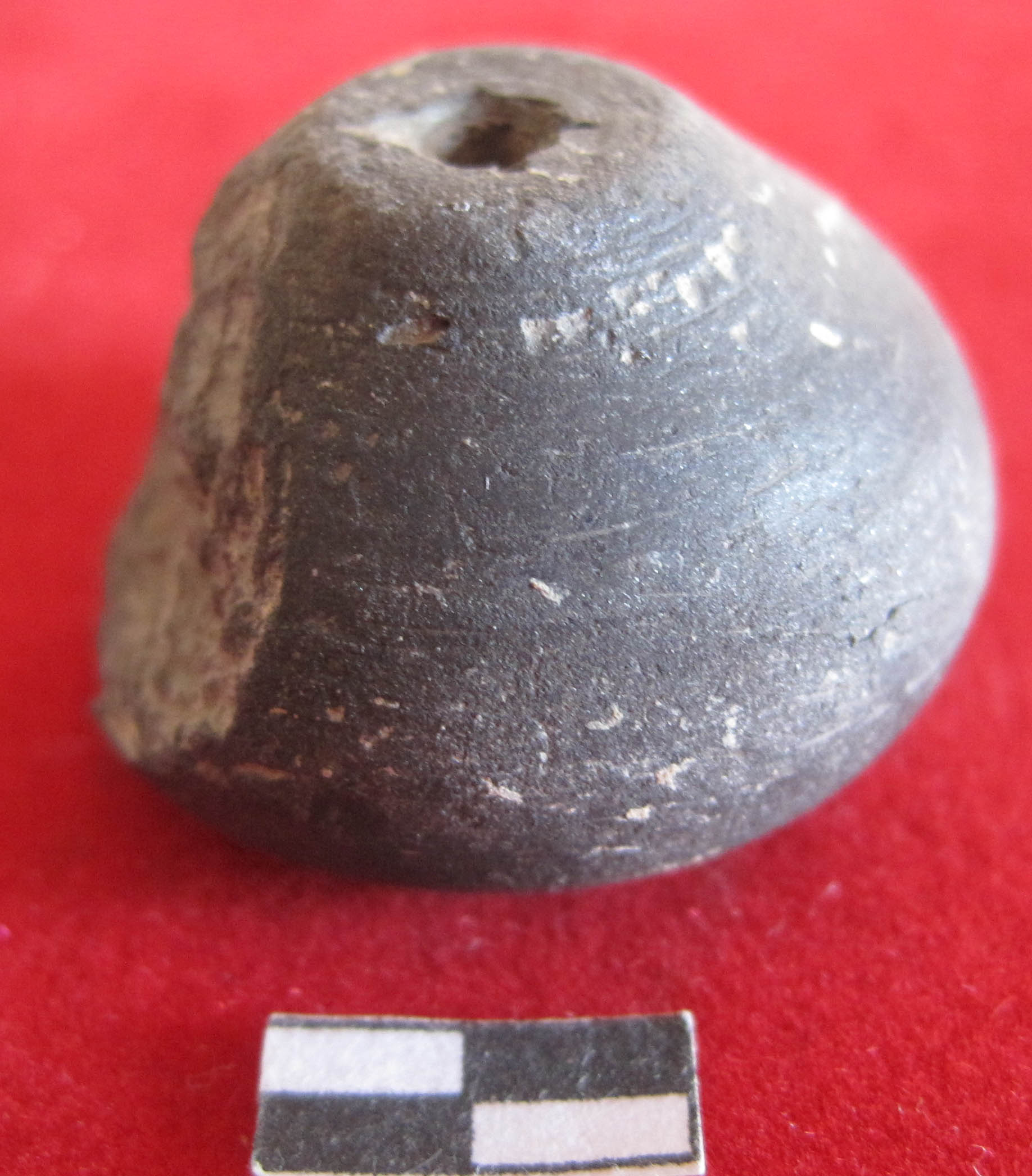 An arecanut shaped bead with circular prominent base