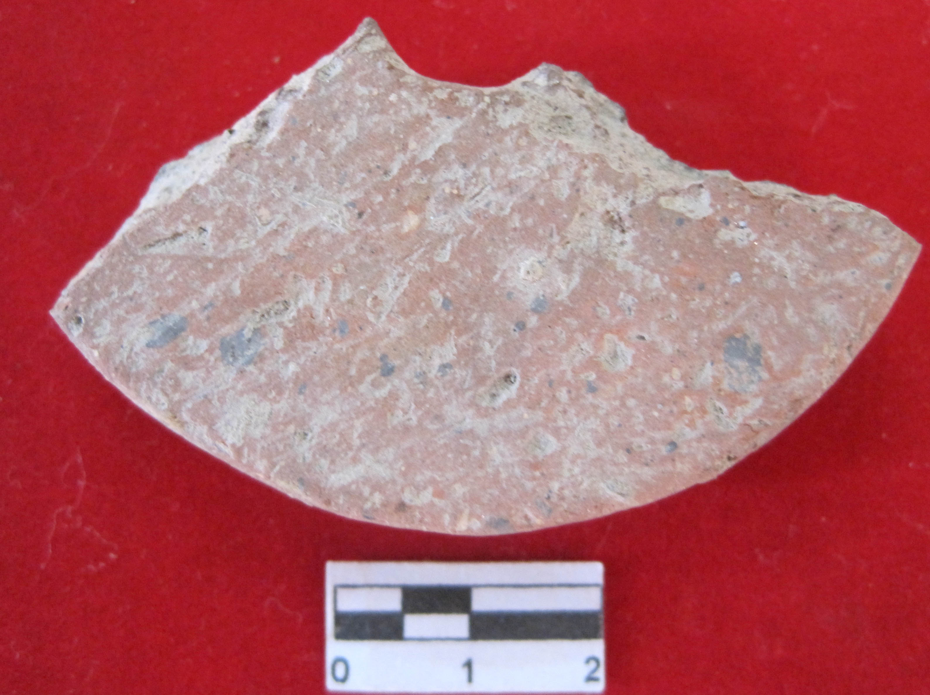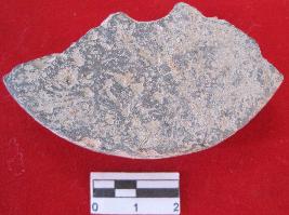 Made out of pot sherd.one side is black and another side is red