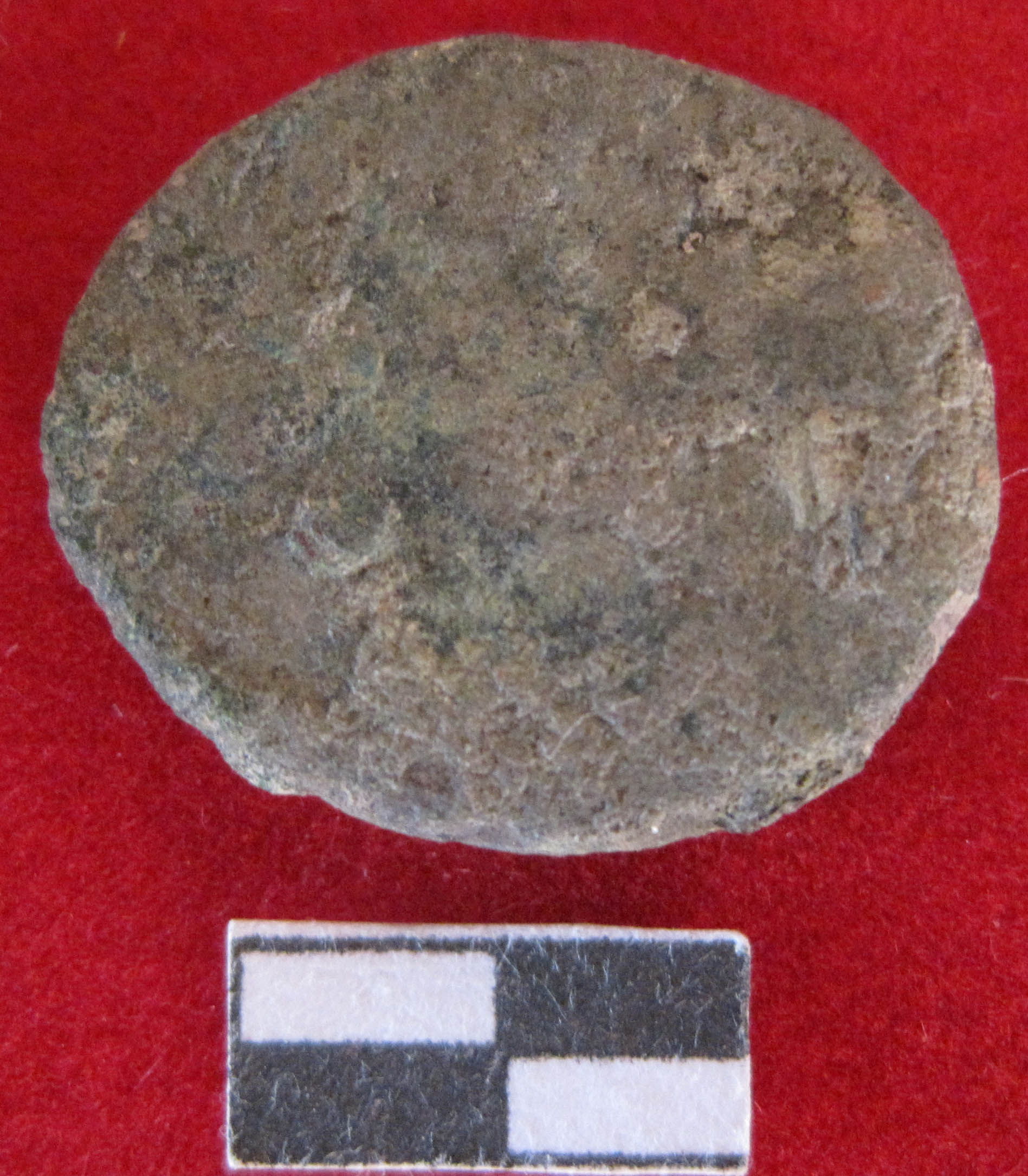 Irregular in shape due to patina on surface.Obverse and reverse side not be satisfactory determined