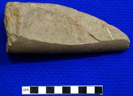 Most of the surface is broken; one side of the surface is smooth and round, the other side is broken and shows triangular shape.