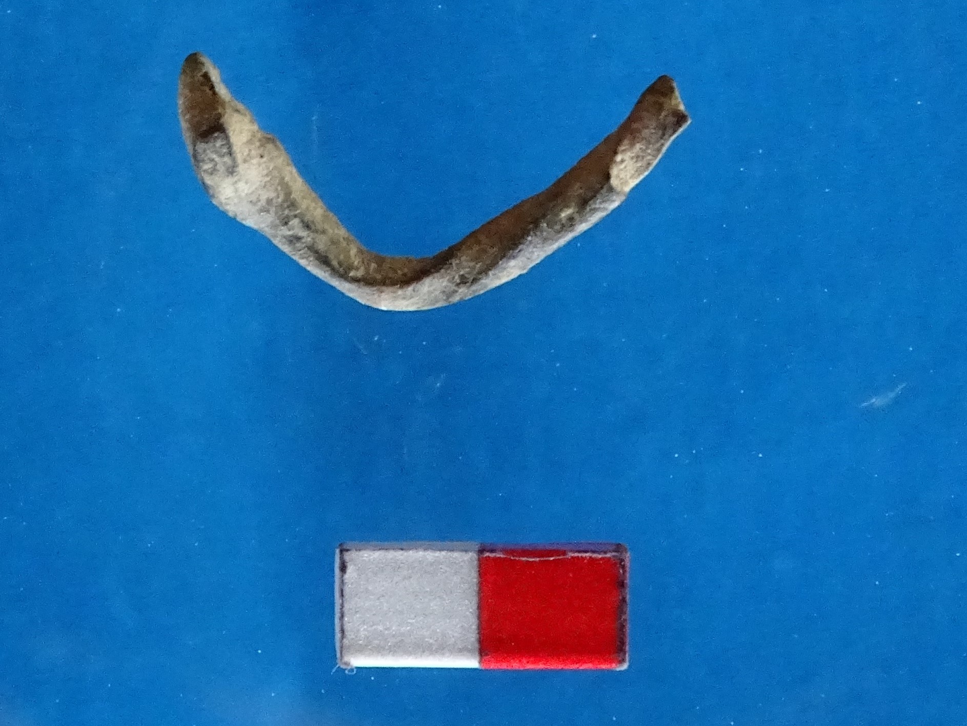 Fragment of a ring having a square section. It is roughly semicircular and having a twisted and spiral body decoration. Half portion of the ring available one end is pointed and the other end is blunted.