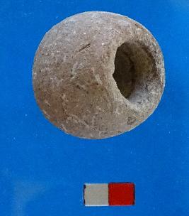 | Description / विवरण | Roughly elongated barrel shaped bead, where one end is long but the other end is short, with a perforation at the centre. |