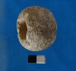 | Description / विवरण | Elongated round shaped bead, with a perforation at the centre. |