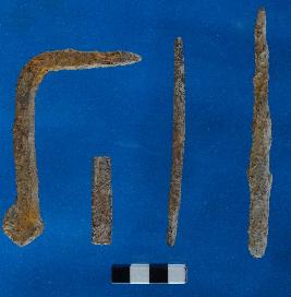 | Description / विवरण | 1-Iron nails of rectangular section, head is roughly triangular shape, shank is tapering, one end is thick and the other end is thin and pointed 2-Iron nails of rectangular to circulsr section, head is missing, shank is tapering, one end is thick and the other end is thin and pointed 3-Flat Iron chisel of rectangular section and flat, one end is thick and the other end is thin and sharp. 4-circular section stylus one end is slightly flat and other end is round |
