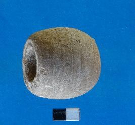 | Description / विवरण | Elongated barrel shaped bead, having smooth and a perforation at the center. |