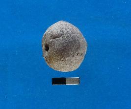 | Description / विवरण | Roughly spherical barrel shaped bead, where one end is long but the other end is short, with a perforation at the centre. |
