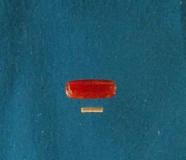 | Description / विवरण | Barrel shaped carnelian bead, having smooth and a perforation at the centre. Polished surface. |
