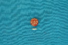 | Description / विवरण | Etched red carnelian tablet shaped bead having design of radial lines in white colour on the periphery. |