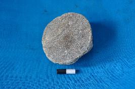 | Description / विवरण | Sandstone flatted round shape hopscotch. Coarse surface. Partly edges broken, |